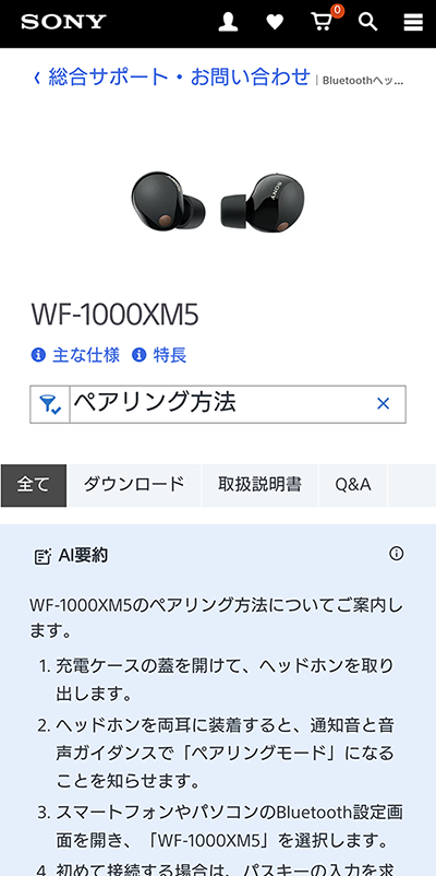 例)WF-1000XM5 製品ページ AI回答イメージ