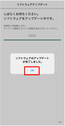 ソフトウェアの転送が完了すると、自動的に「オーディオ機器のソフトウェアをアップデートしてください。」と表示されます。